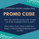 Education Matters had an amazing day at the Academies show in April, we got to meet educators, leaders and specialists within the industry. Those that stopped by and chatted we handed out a promo code, there is still time to take advantage of this offer. Log on to https://edm.fmarv.co.uk/excel18/ or feel free to call us on…