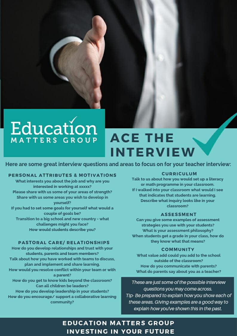 Do you want to ace an upcoming interview? Here are some great questions and areas of focus for questioning that you may be asked to explain as a teacher.